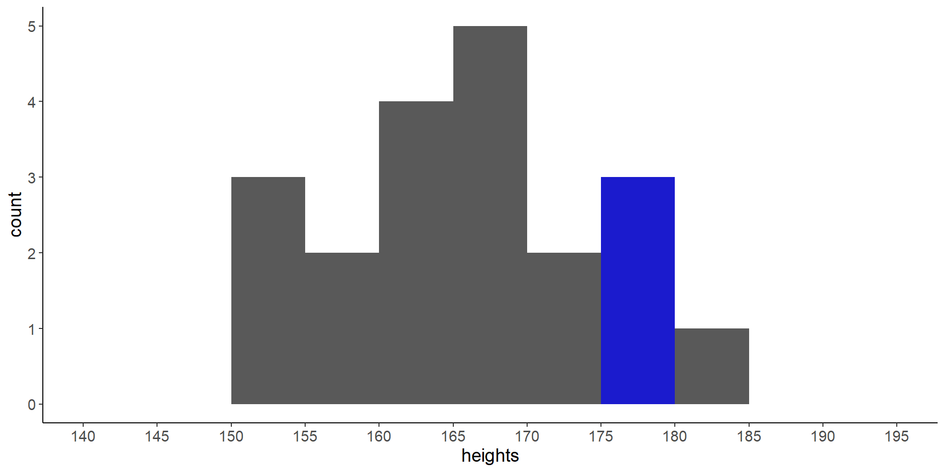 geom_histogram(aes(heights), breaks = seq(140, 195, 5)) +