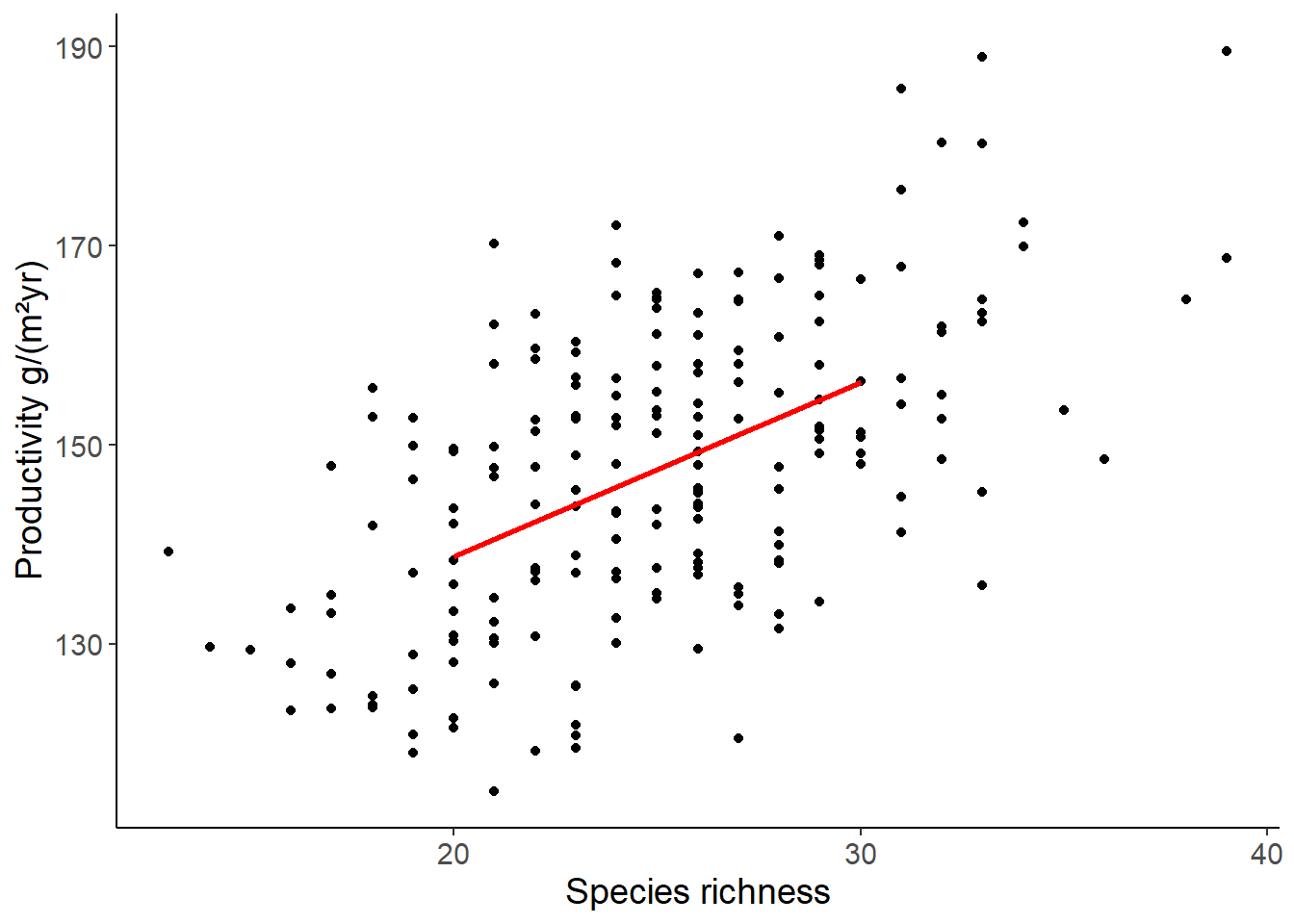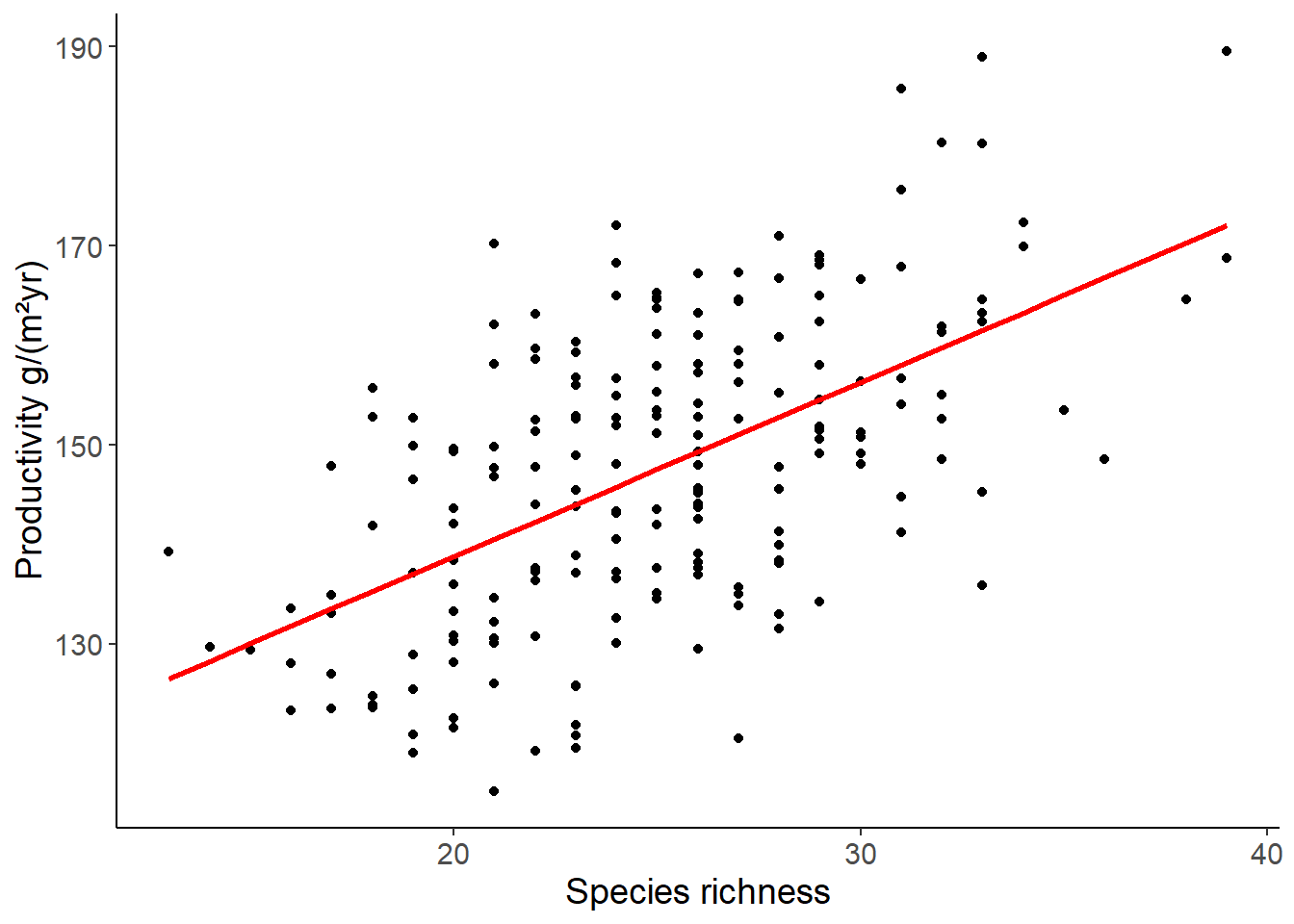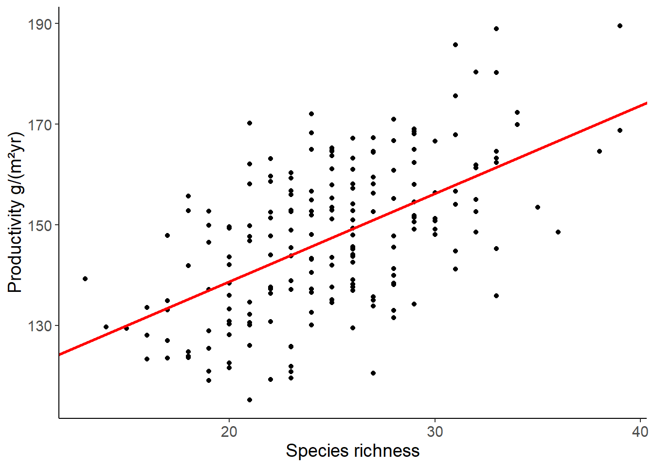 labs(x = "Species richness", y = "Productivity g/(m²yr)")