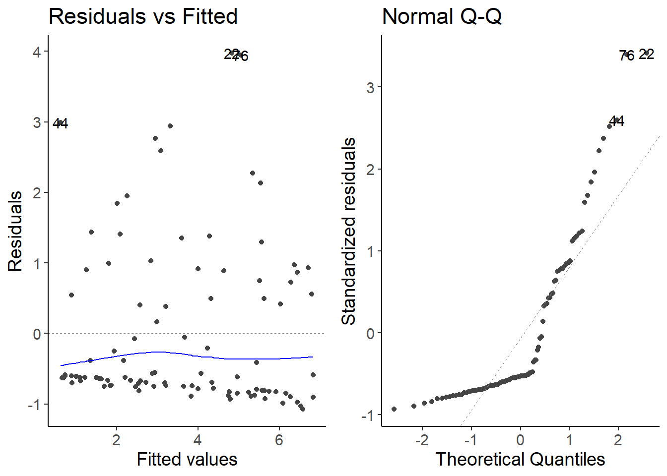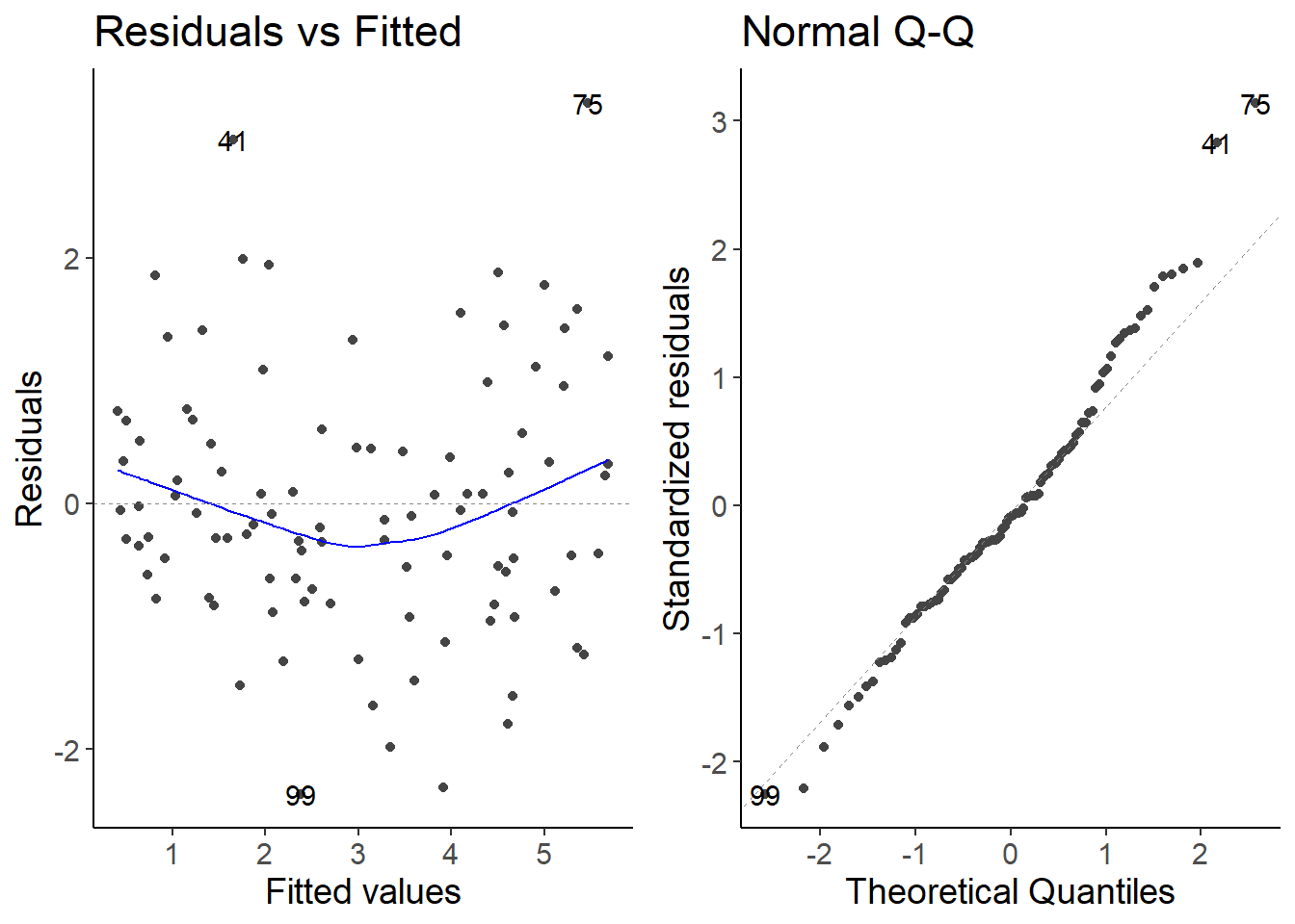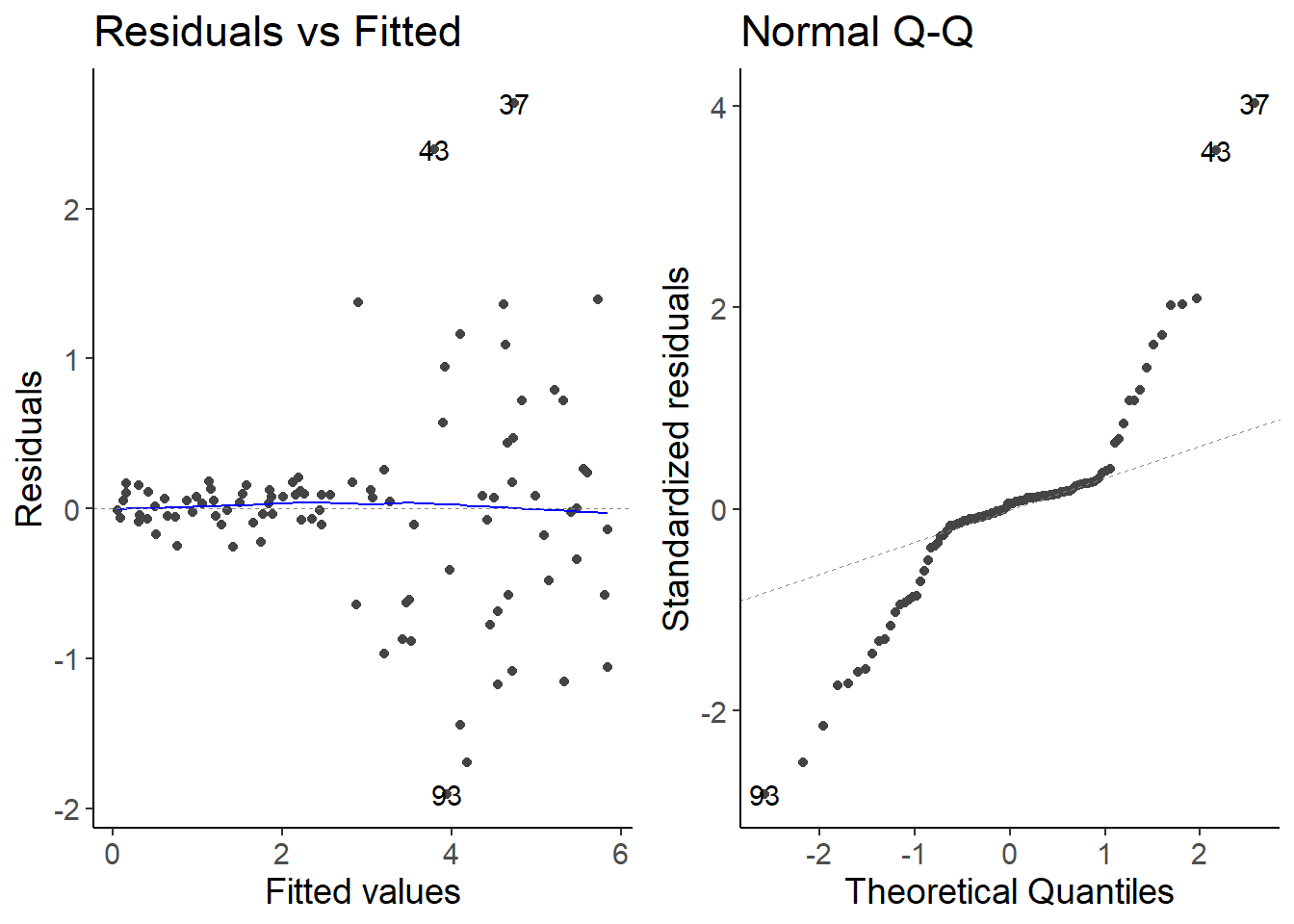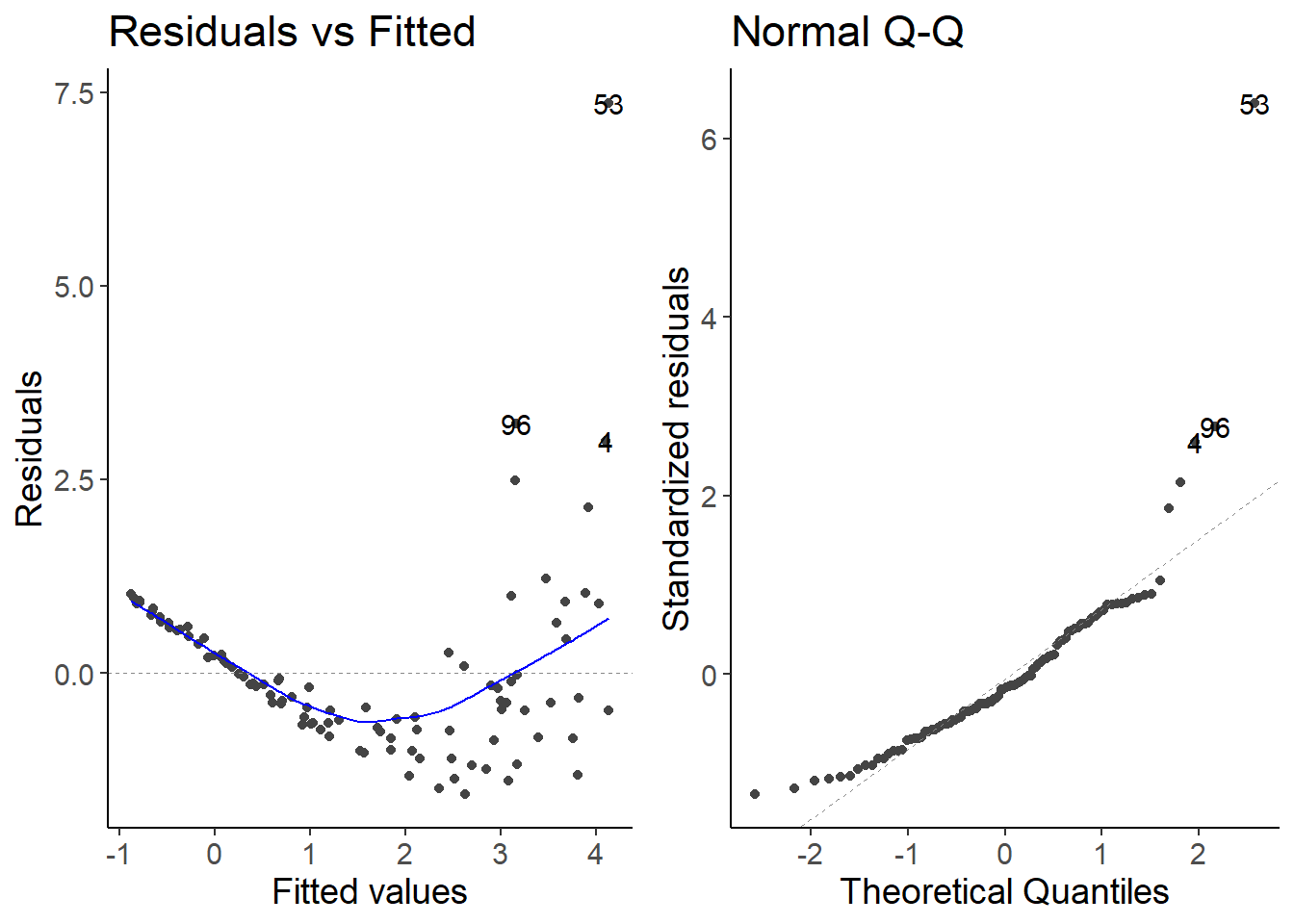 Everything is fine here, even if there seems to be a slight trend in the residuals.