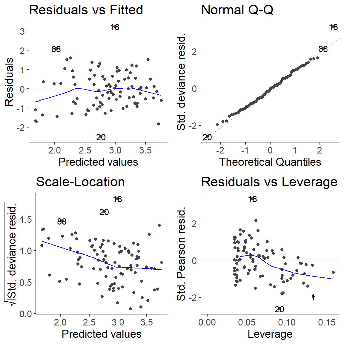 | Checking model assumptions | autoplot() |