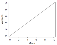 • Assumption: Proportional relationship between \(\text{mean}(y_i)\) and \(\text{var}(y_i)\)