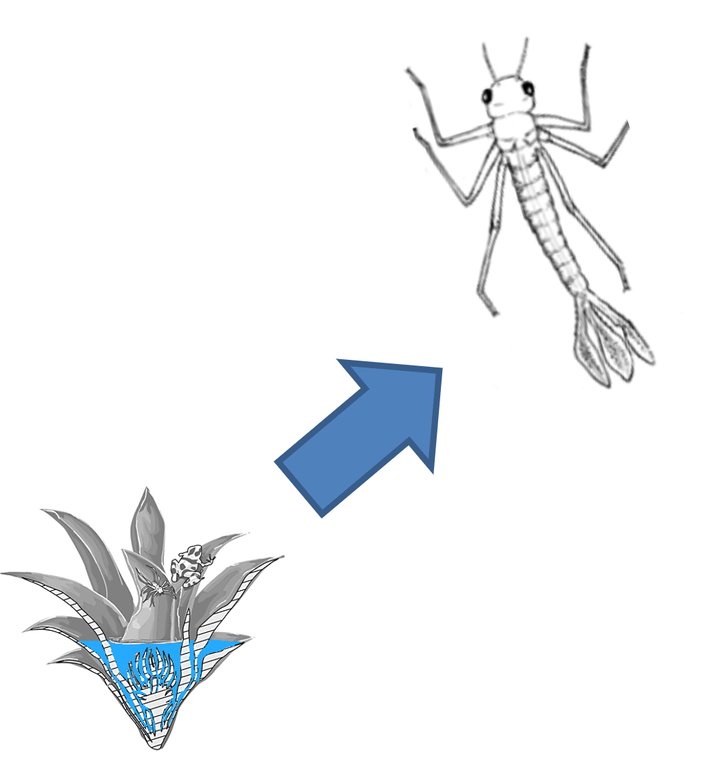 In this example, we investigate the occurrence of Odonata larvae (dragonflies and damselflies) in water-filled bromeliads, which are epiphytic tropical plants. The data were adopted from Petermann et al. 2015 and is provided in the dataset 08_bromeliads.csv.