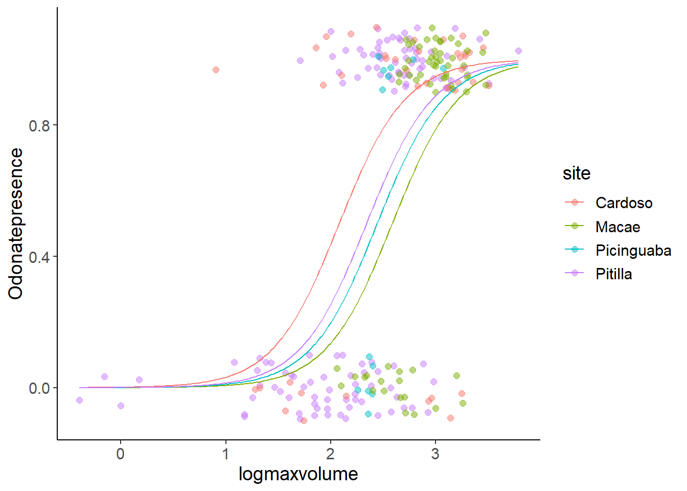 Odonatepresence ~ logmaxvolume * site
