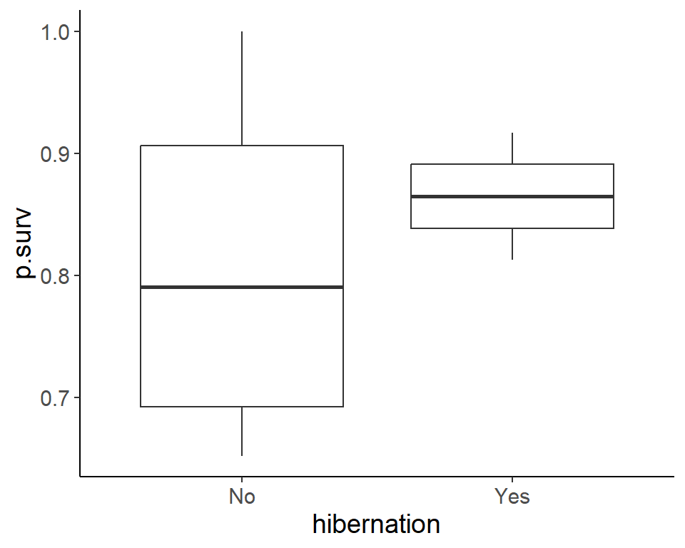 ggplot(pdogs1, aes(x = hibernation, y = p.surv,