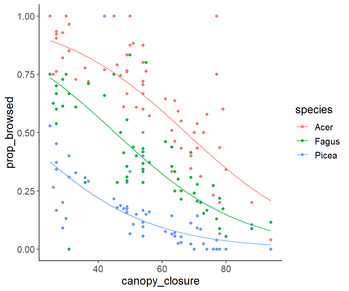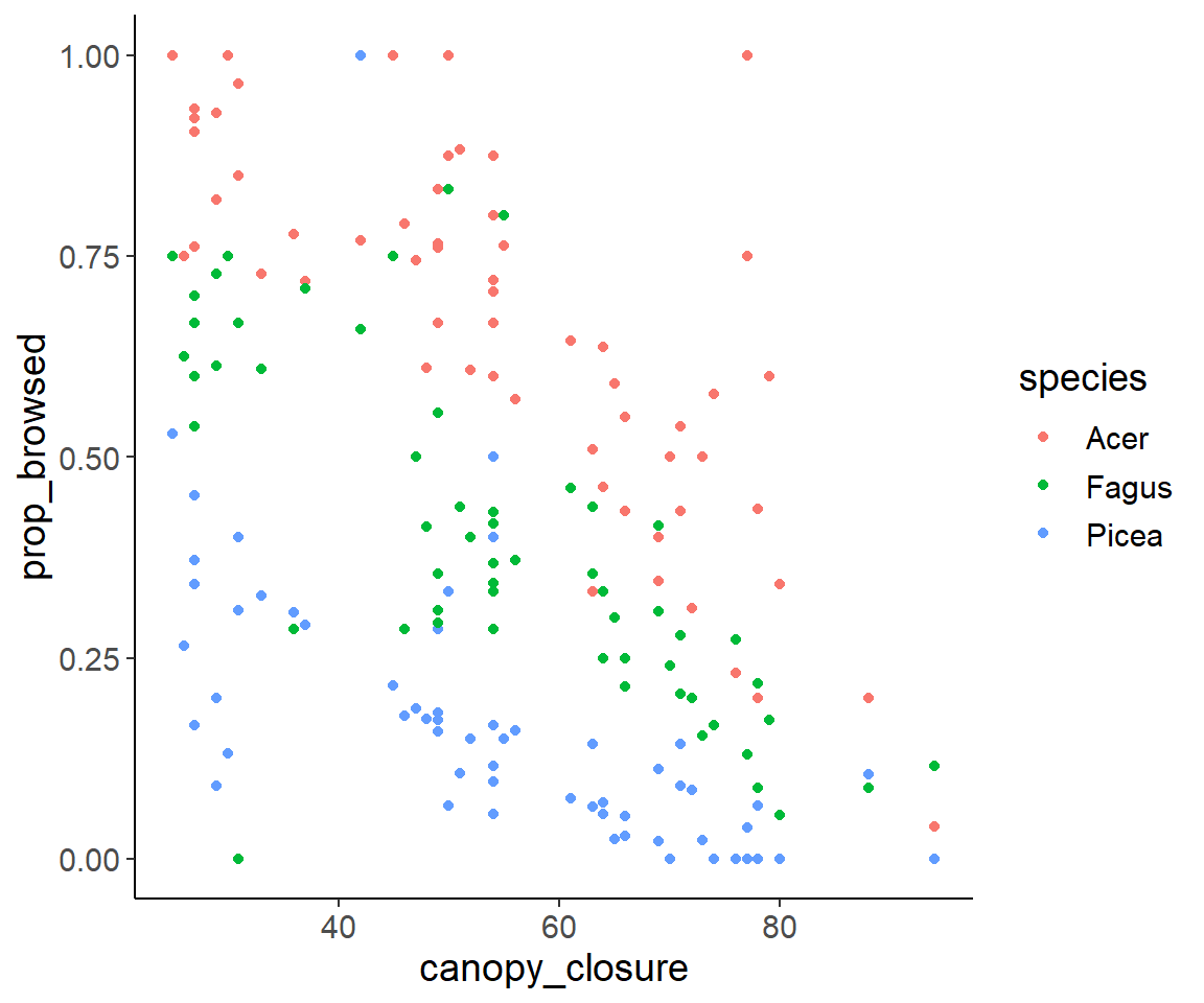 theme_update(text = element_text(size = 14))Solution for exercise on browsing damage on tree saplings