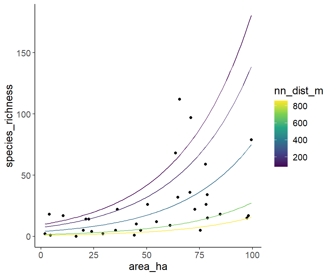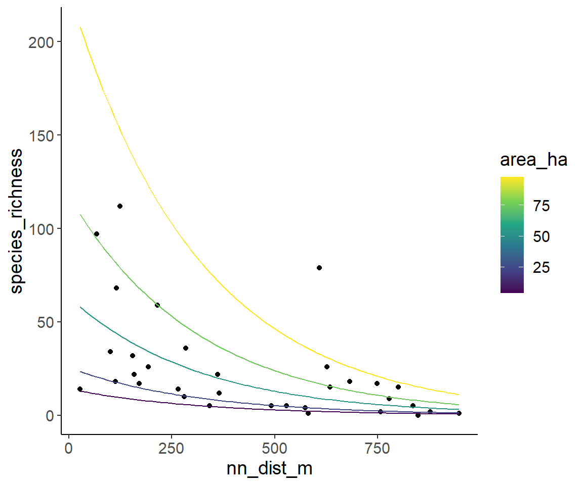 species_richness ~ area_ha * nn_dist_m